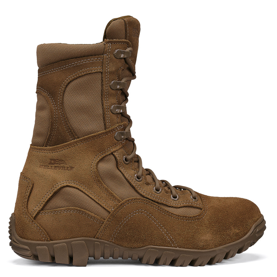 The Belleville C793 Men's Coyote Brown Waterproof Assault Flight Boot was designed for U.S. military pilots looking for a low profile, high-performance authorized boot. This boot is both AR-670-1 compliant and USAF Flight Approved (AFI 36-2903 compliant). This boot provides waterproof protection with a Gore-Tex bootie integrated into the lining of the boot to ensure your feet stay dry. The Belleville C793 features a Vibram Ibex outsole with sharp angled lugs and defined heel maximize traction. Ideal for inclement weather, this boot is steps up to vertical climbing & crawling. This boot is proudly made in the USA and is Berry Amendment Compliant.