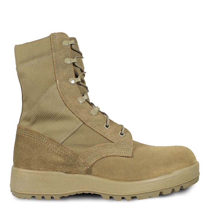 The McRae 8189 Men's Hot Weather OCP ACU Coyote Brown Military Boot was designed for the hot weather setting of the Persian Gulf. This boot is completely American made and features top quality materials such as 100% American cowhide leather and genuine nylon Cordura to give you years of service. An unlined upper keeps the heat off you in hot temperatures. The 8189 was specifically made in coyote brown for wear with the Army's new OCP ACU, scheduled for a complete turnover to in 2019. This boot is Berry compliant and meets all requirements of AR-670-1.